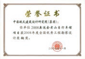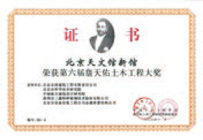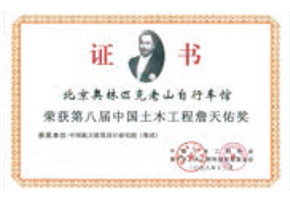 |  | HQ-51 type modern greenhouse was awarded with the gold prize of National Spark Program during the "7th Five-year Plan". | Research on the half-life of hydrazine, methyl hydrazine and unsymmetric dimethyl hydrazine in the air was awarded with the second prize of National Progress in Science and Technology. |  |  | The new hall of Beijing Planetarium was awarded with Jemes Tian Yow Civil Engineering Prize | Laoshan Velodrome of Beijing Olympic Games was awarded with Jemes Tian Yow Civil Engineering Prize |  |  | Laoshan Velodrome of Beijing Olympic Games was honored with the national excellent survey & design award | Award for excellence engineering survey and design standard design prize |  |  | The security and prevention system for 2008’ Beijing Olympic Games was honored with Beijing Science and Technology Award. | Shandong Taigu Hangar (phase III) and auxiliary works were honored with National Quality Project Award. |