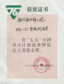HQ-51型现代温室获“七五”全国星火计划成果金奖