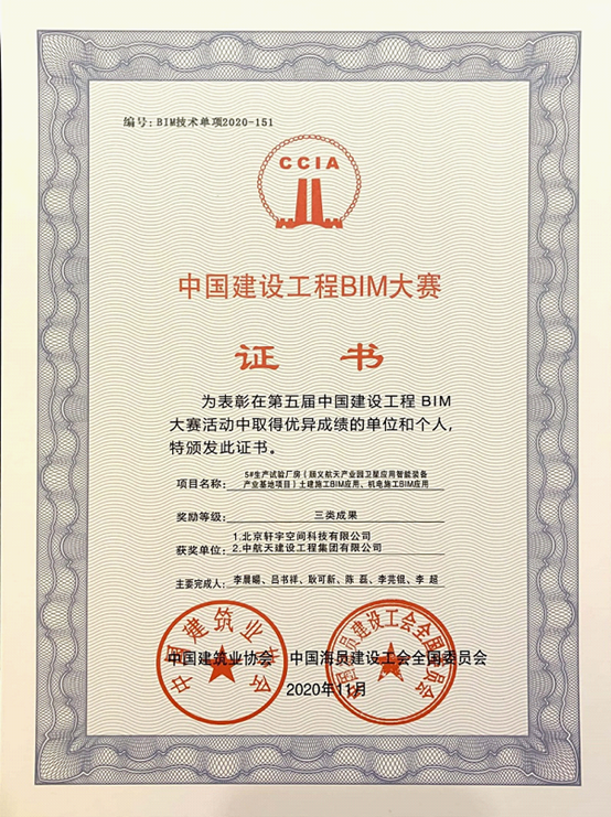 12月15日至17日,中国建筑业协会在武汉组织召开第五届建设工程BIM技术应用成果经验交流会。会上表彰了第五届建设工程BIM大赛获奖成果,中航天建设工程集团有限公司二公司5#生产试验厂房项目部土建施工BIM应用、机电施工BIM应用成果获评单项三等奖。该奖项是中航天集团在BIM技术应用领域获得的第二个国家级奖项。