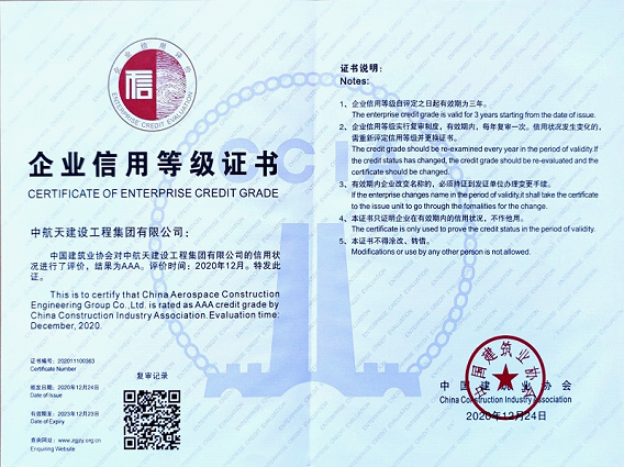中航天集团将以此次信用授级为起点,牢固树立诚信意识,进一步加强企业诚信体系建设,切实提高工程质量和安全管理水平,积极履行社会责任,为实现建筑业高质量发展做出新的更大贡献。(刘振东 文)