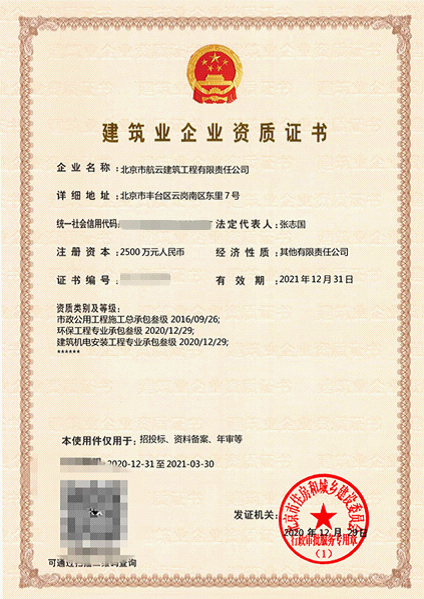 近日,航天建设所属北京市航云建筑工程有限责任公司成功取得建筑装修装饰工程专业承包贰级、建筑机电安装工程专业承包叁级和环保工程专业承包叁级资质。这是在公司原有建筑工程总承包贰级、市政公用工程施工总承包叁级资质的基础上,为企业发展迈出新的一步。