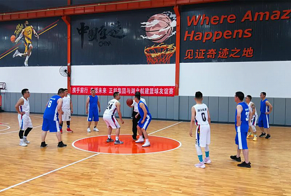 5月30日下午3点半,湖北航建党委副书记工会主席黄理春、副总经理总法律顾问黄钦鹏带领队伍准时到达球场,并得到了华中正邦的热烈欢迎。下午4点30分,正邦集团与湖北航建篮球友谊赛在武汉沃德运动中心正式打响,双方队员高喊“向华中正邦学习”、“向湖北航建学习”的口号激情入场。