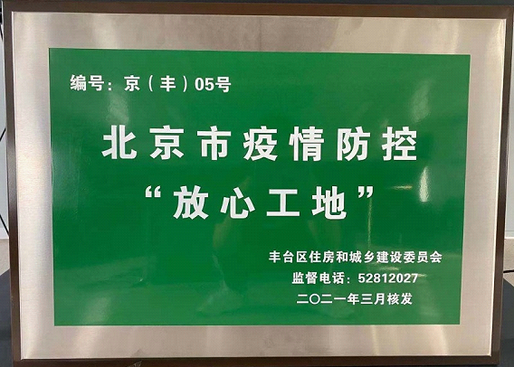 6月7日,航天建设所属中航天建设工程集团有限公司三公司承建的丰台区云岗西路9号职工住宅项目荣获北京市疫情防控“放心工地”荣誉称号。