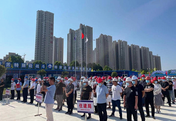 为推广企业施工现场管理模式、成熟经验和创新工艺,提升建筑工程质量安全管理水平,7月27日,由航天建设所属河南航天建筑工程有限公司第九项目经理部承建的西峡县惠民养老中心项目,组织举办了西峡县质量安全标准化、双重预防暨扬尘治理现场观摩会。河南省南阳市住建局建筑市场监管科科长王立臣、质量安全监管科科长崔晓东、质监站站长秦新博、安监站站长周文涛应邀出席观摩会,西峡县住建局建管股、质监站、安监站全体人员,各施工、监理、建设单位和施工项目负责人、技术负责人、安全管理人员等共计160余人参加。河南航建党委副书记、总经理唐辉,总工程师李东代表公司参会并作了经验介绍。