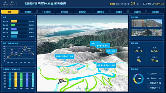 由华航环境承接的北京2022年冬奥会项目位于延庆区张山营镇小海坨山地区,由于赛区主赛道部分为山区工程,面临多重难题。华航环境凭借自主研发平台,通过提供多维度可视化统筹监管、过程控制、业务协同等模块,加速集成各专业管理系统,在过程数据挖掘和大数据分析中,实现了对项目的集中监管,解决了多个施工现场痛点难点,为工程项目管理辅助决策提供支撑。