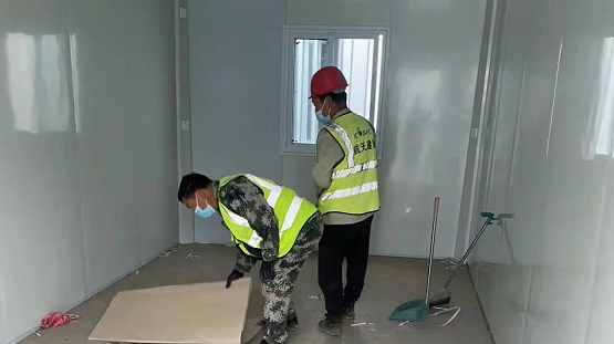 在项目班组的参与下,方舱医院一期144个房间,仅8天就建设完成。项目部在全力做好疫情防控的同时,积极响应地方政府号召投入到疫情防控阻击战中,用实际行动践行了“我为群众办实事”,守护人民群众生命安全。