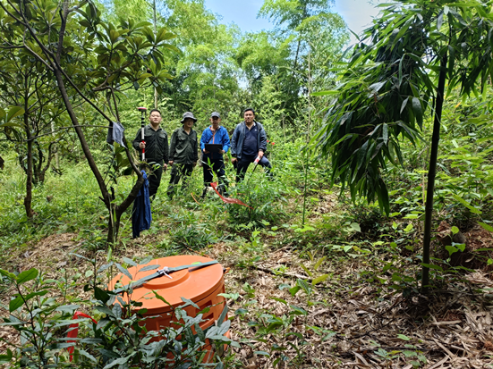 5月底,项目部人员一抵达现场,即刻赶往项目场地,在初步了解项目场地大致位置后,当日就完成了对现场实际情况的摸查和探寻,但因现场环境复杂,项目部人员 抵达山脚底部未能继续行进。此后,未获取更精准的数据,项目部成员又多次往返崇山峻岭,在代军和周长文2名勘察老同志身先士卒的带领下,成员们一路披荆斩 棘,进行深度的路线踏勘。