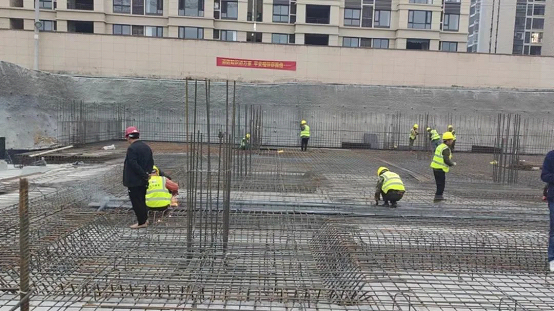 近期疫情高发导致人员紧缺,加上气温骤降,施工困难重重。项目部结合现场实际情况,制定冬季生产计划,提前备足防冻保温材料,力求将寒冬对生产进度的影响降到最低。项目部因地制宜、合理安排,积极协调不同工种间的交叉作业,安排好工序之间的衔接,在保证安全的前提下,加班加点进行施工作业。日前,A06地块2#主楼已完成从地下一层到地上二层及车库内架搭设,墙柱钢筋绑扎完成100%,顶板铺设完成40%,人防顶板钢筋绑扎完成90%,1#、3#楼基础筏板施工正在有序进行。