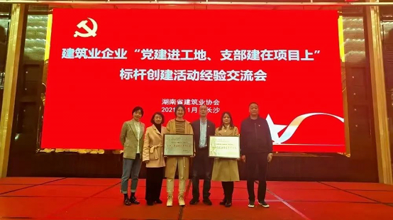 “党建进工地、支部建在项目上”标杆创建活动,是由湖南省建筑业协会于2021年首次组织发起,旨在激发建筑行业基层党建工作活力,以高质量党建推动行业高质量发展。鉴于协会强大的行业影响力,以及主题活动对“项目党建”的促进作用,湖南航建党委主动参加首届标杆创建活动,并成功将华通·汇达食品供应链基地一期项目、桃花源著项目一期二标段总承包工程项目创建为“优秀项目部”。