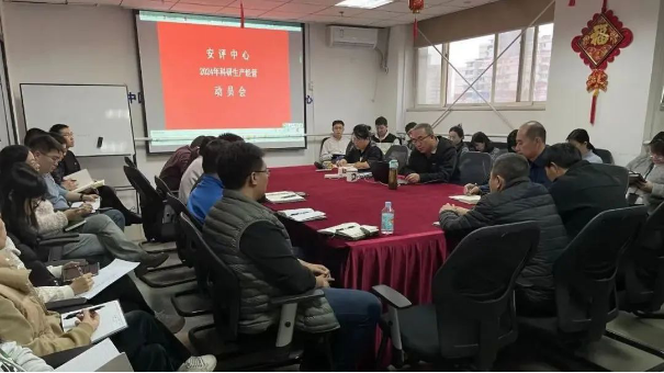 复工第一天,安评中心召开2024年科研生产经营动员会,回顾2023年生产经营任务完成情况,分析2024年新任务新形势,布置重点任务,号召全员秉持“专业、奉献、团队、高效”的文化理念,确保全年科研生产任务顺利完成。