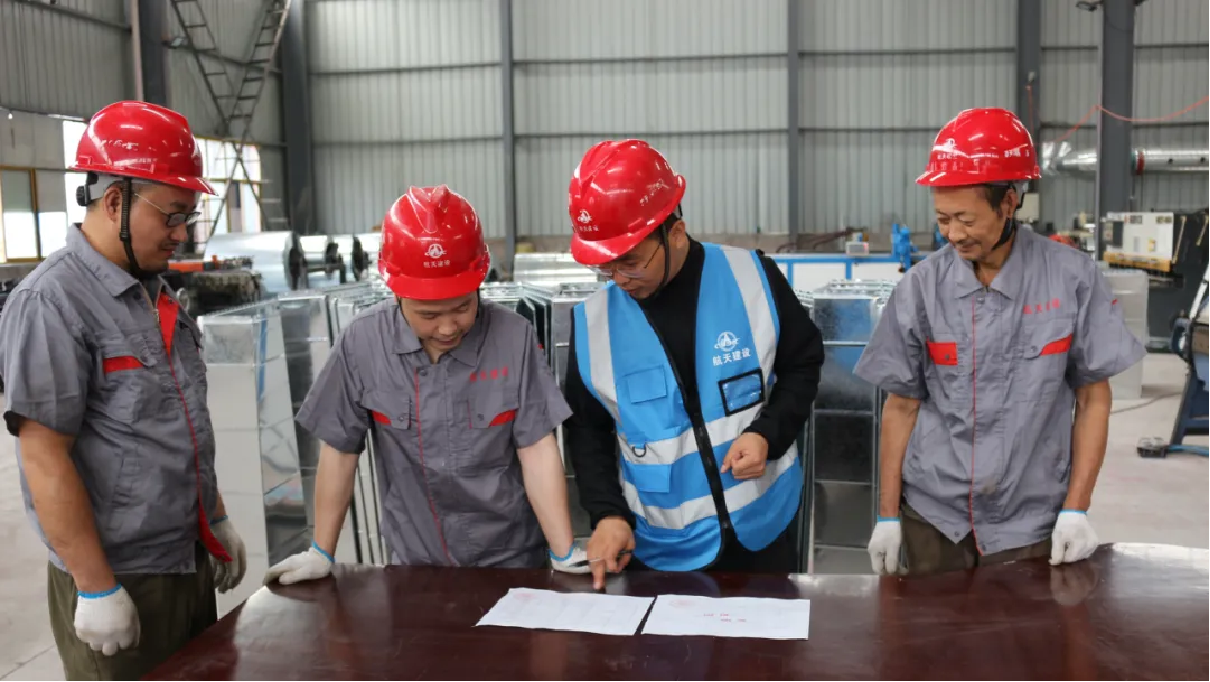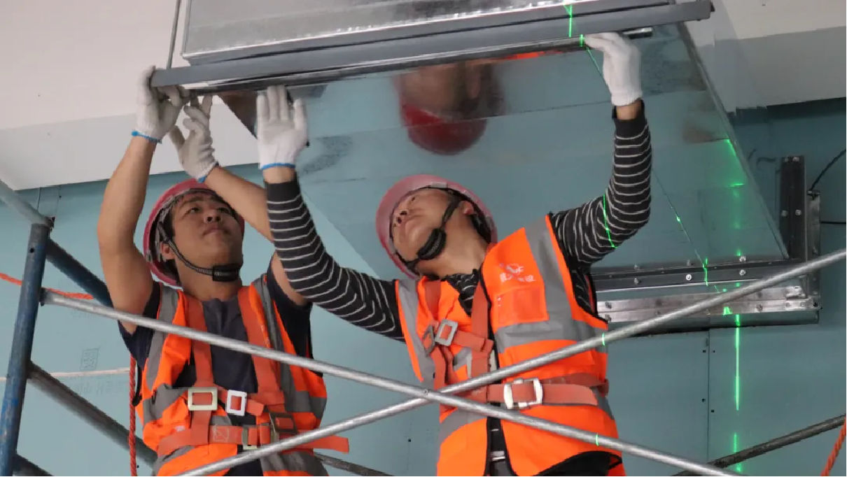 建筑安装公司通过技术创新,全面提升机电安装工程的质量和效率。组织技术人员定期开展“五小”活动,改进施工机具和工艺,取得良好效果。研发共用支架加工平台与吊装机具,提高安装效率;研发管道吊装平台,减少焊口数量和人员投入;研发阀门组件预制加工平台,提高施工质量和安装效率;研发模块化吊顶风口安装新方法,解决风口安装观感及漏风率等问题;研发风管新施工方法,攻克三面剪力墙结构风井无法安装金属风管的行业难题。