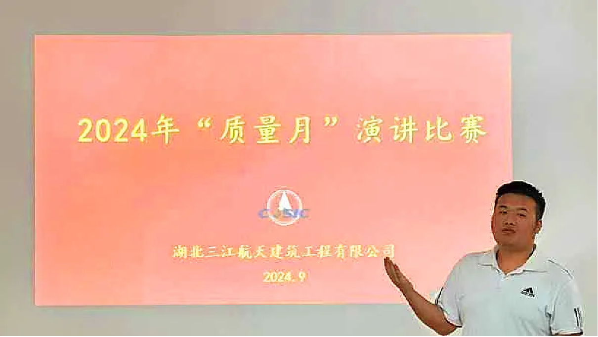 2024年全国“质量月”活动期间,举办“警钟长鸣,质量责任重于泰山;一次做好,铸就工程卓越品质”主题演讲比赛,来自各部门和在建项目的技术管理人员结合典型质量事故案例及惨痛教训进行宣讲,警醒大家要时刻绷紧质量这根弦。结合本职工作岗位,深入浅出地讲解学习掌握新理论、新技术对强化全员“零缺陷”质量意识、开展精细化管理、推动技术创新发展的重大意义,切实把党的最新理论成果转化为做好质量工作、建设精品工程、追求卓越品质的动力,引导全员从每一项工程、每一道工序做起,全力以赴打造航天建设金字招牌。