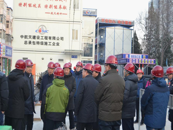 近日,中国航天科工集团有限公司副总经理龚波、中国航天科技集团有限公司副总经理张忠阳、航天科工安保部部长胡军、航天科技运保部副部长钟加德、航天科工安保部副部长殷海波等一行莅临中航天二公司阜成路八号院37#职工住宅楼项目视察、指导工作,中航天二公司项目经理徐伟等项目人员陪同参加。