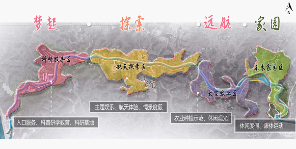 本项目总用地3446.23亩,投资估算约20亿。总体规划建设以科研服务区、航天探索区、太空农业区、未来家园区四大板块为主,围绕“以生态农田河流、乡村环境为基地,以航天育种产业为先导,以航天科技体验为核心,以宇宙科幻农场情境为氛围,以带动龙川全域乡村振兴为目标”的中心思想,打造华南地区航天科普乐园、中国航天农业商业化示范基地。