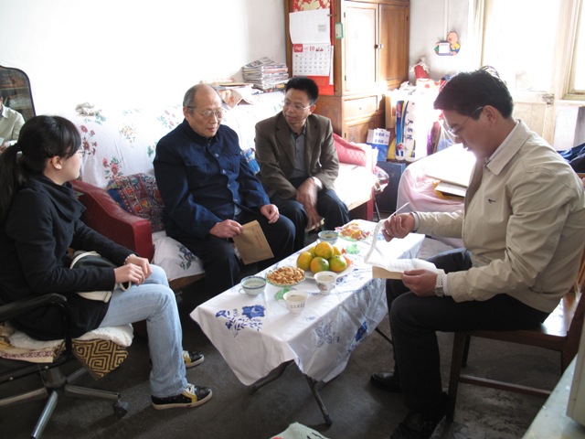 图为:中秋节前夕,七院党群部与团委陪同科工宣传处同志采访林老