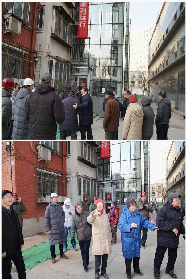 老楼加装电梯是解决中高层居民、特别是老年人出行难的有效途径,是领导关注、群众期盼的热点问题,随着社会老龄化发展趋势加剧,老年人上楼下楼难问题日益凸显,成为近年社会焦点问题。尤其阜成路14号院加装电梯工程,设计理念新颖,主体采用钢结构框架,外墙玻璃幕通透美观,室内将原有的双跑楼梯改为单跑钢结构楼梯和钢平台,电梯候梯厅与住户在同一标高上,住户通过钢平台到达候梯厅,乘坐电梯下楼,无需再走半跑楼梯,实现平层入户。作为十二院离退休老职工的民生工程,楼内居住的多数是为航天事业奉献一生的退休老干部,电梯加装前,许多体弱的老职工数年下楼不便,住在四楼的老两口,都已八十多岁了,一个腿脚不便,一个心脏不适,原来还能互相搀扶着下楼,近来身体状况不佳,已经连续两年多下不了楼,去年得知加装电梯的想法,老两口还觉得不可思议,如今看到这么快就可以用上新电梯激动不已。像他们这样的老两口也只是众多离退休老职工中的一个缩影,民生工程建设成果的落地,离不开多方的努力合作,是暖民心、顺民意的充分体现。