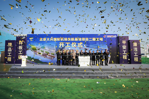 3月16日,北京大兴国际机场东航基地项目二期项目开工仪式隆重举行,现场布置一新、高朋满座。航天建设所属航天建筑设计研究院有限公司副总裁闫德刚、勘察分院副院长吴生权代表勘察单位参加了开工仪式。