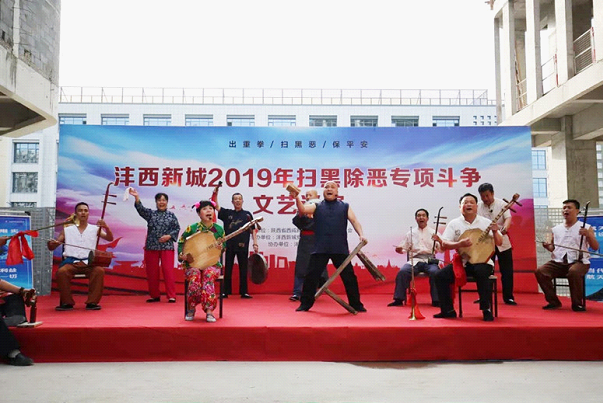 巡演现场气氛热烈,秩序井然,演出以“扫黑除恶专项斗争”为主题,众位秦腔名角以快板、小品、相声、秦腔、歌曲等表演形式宣传扫黑除恶,为观众呈现了一场精彩纷呈的视听盛宴,不时赢得阵阵叫好和掌声。在现场,西咸新区沣西新城管委会还开展了法治宣传,向大家发放了扫黑除恶宣传品和宣传折页,把党和政府“扫黑除恶,除恶务尽”的决心传递给广大群众和各位工友们。