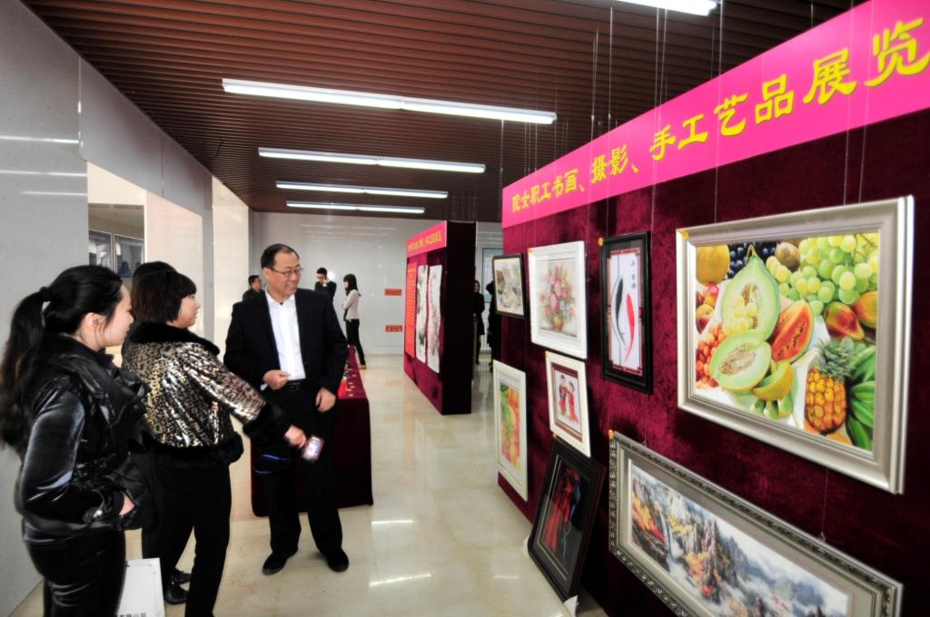 一件件女职工自己设计制作的插花、剪纸、挎包、婴儿鞋、鞋垫等手工艺品,一幅幅洒脱灵动的油画、水墨画、年画、书法,一张张捕捉精彩瞬间的摄影佳作,令参观者赞许不已。为喜迎三八妇女节,七院工会立足建筑设计单位特色,于3月1日—10日举办了“巾帼展风采”女职工书画、摄影、手工艺品大赛,为三八节增添了喜庆气息,受到广大职工欢迎。 本次展览收到300余件作品,七院工会从中精选了100多件进行了展示。七院女职工较多,从事艺术、设计等领域工作人员比例较高,她们作为航天儿女,胸怀祖国、热爱生活、向往艺术、追求卓越,以女性特有的细致思维和真挚情感表达着对工作和生活的热爱。其中有的书画作品是职工们根据航天建设本职工作构思的,有的十字绣则是根据自己小孩的形象绣制,以个性吸引了观众。 展览期间,七院董事长、党委书记于喜国,总经理高峰,党委副书记、纪委书记、工会主席李秀芬等领导和各单位工会主席参观了展览,并为七院本部职工之家揭牌。职工之家的开放为七院职工再送一份礼物。(文/冯刚 摄/武铠)