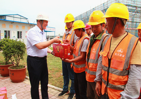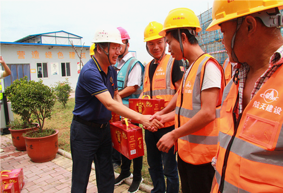 8月1日,中国国防邮电工会副主席李树国、国防邮电工会国防科技工作部副部长张培立,陕西省总工会党组成员、副主席、省国防工会主席吴志毅,省国防工会副主席陆毅、综合部部长靳海斌一行,到航天建设所属陕西航天建筑工程有限公司承建的乐叶光伏项目施工一线,开展夏季安全生产和劳动保护监督检查,为高温下辛勤工作的职工农民工送上清凉和慰问。陕西航建党委副书记、总经理谢明娟及工会、安全管理部、安装公司等相关人员参与督查和慰问。