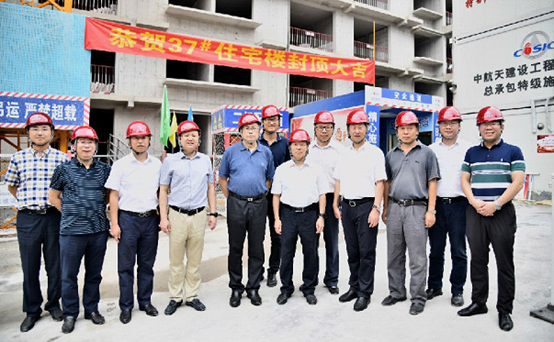8月26日下午,航天科技副总经理张忠阳,安保部部长白燕强,副部长刘欣,安保部高级专务钟加德;航天科工安保部部长胡军,副部长殷海波,房产处处长马现勇等领导莅临37#住宅楼视察指导工作,并祝贺37#住宅楼工程顺利封顶。航天建设党委副书记、副总经理杨帆,发展计划部副部长曹刚,中航天党委书记、董事长杨明,副总经理于立民及37#住宅楼项目部工作人员陪同。