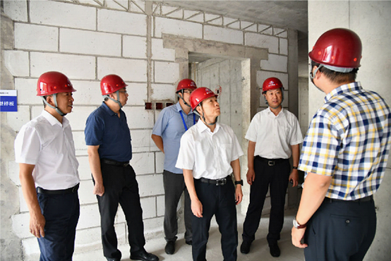 张忠阳一行在项目部人员的带领下参观了37#住宅楼工程的施工现场,并仔细询问了工程的封顶事宜、下一步的工作安排,项目部人员对其一一做出了详细解答。在听取了项目负责人的汇报后,集团领导更直观、更全面的了解了37#住宅楼在建工程的实际情况,对项目部所做工作给予了充分的肯定,并要求及时开放样板间, 注意施工期间的安全,期待项目的顺利竣工。