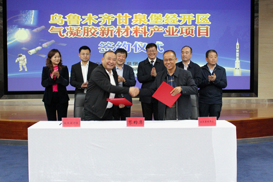 奠基仪式前,航天设计院与甘泉堡经开区就气凝胶项目合作协议举行了签约仪式,双方本着互惠互利、合作共赢的合作理念,将气凝胶项目作为航天产业园的先锋军,首先启动产业入驻工作,为后续航天产业园内其他产业的入驻打通道路,奠定基础。