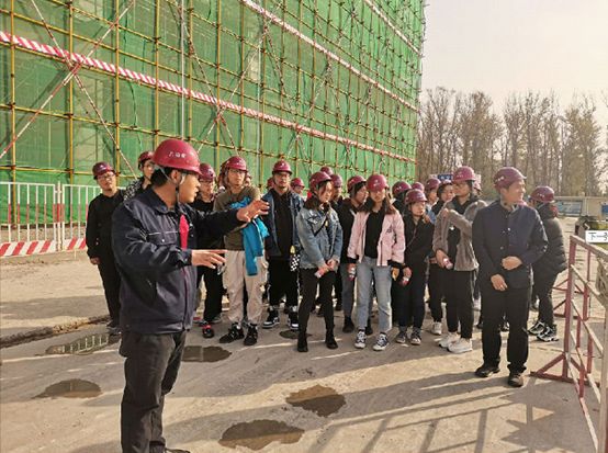 参观过程中,张建强将工程的总体情况、项目特点、施工进度等进行了一一介绍,并着重将施工过程中的质量控制要点、安全控制措施、过程控制等对学生进行了详细解说。