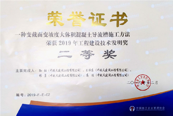 12月27日,中国施工企业管理协会2019年工程建设科学技术奖励大会在天津隆重召开。航天建设所属中航天建设工程集团有限公司已授权的“一种变截面变坡度大体积混凝土导流槽施工方法”发明专利喜获2019年工程建设技术发明奖二等奖。