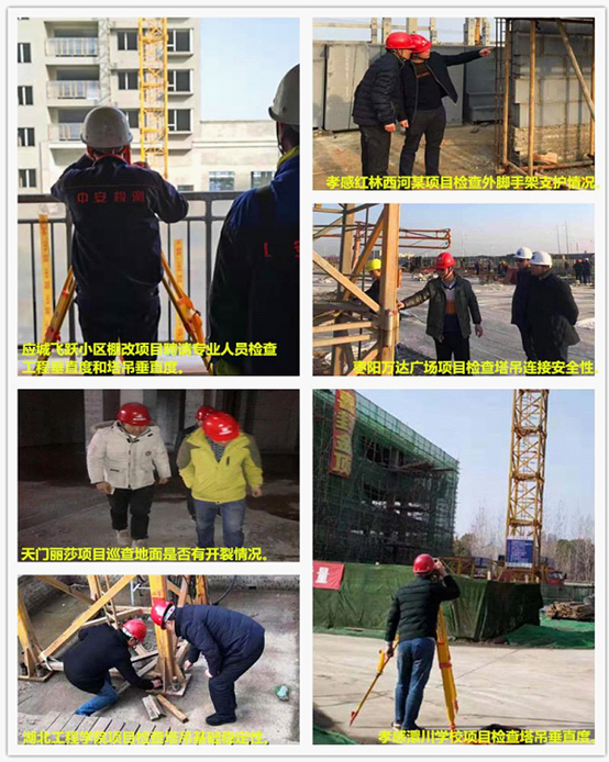 次日清晨,各区域负责人、质量主管、安全主管、项目经理组织检查建筑物震后受损情况。应城飞跃小区棚改项目要求项目停工一天,对工地上的外脚手架、连墙件、塔吊、施工电梯、建筑物垂直度、开裂情况等进行统一检查。孝感片湖北工程学院实验实训楼、澴川学校、红林某厂房等在建项目负责人积极行动,开展大检查。