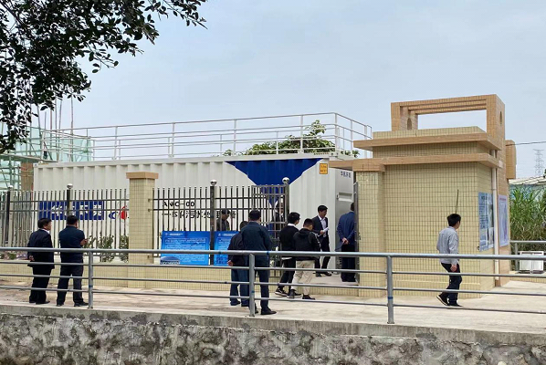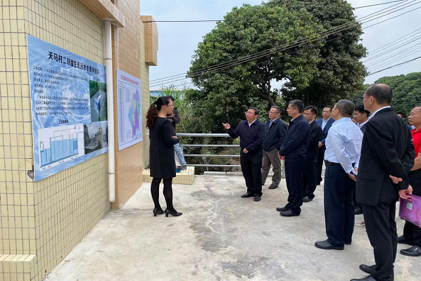 华航环境新会项目负责人向视察领导详细介绍了处理设施的建设及运行情况,并从现场出水口取来处理后的水样作对比,张光军对于生活污水的处理效果表示满意,对新会区农村生活污水处理PPP项目建设给予了肯定。(文/夏向东)