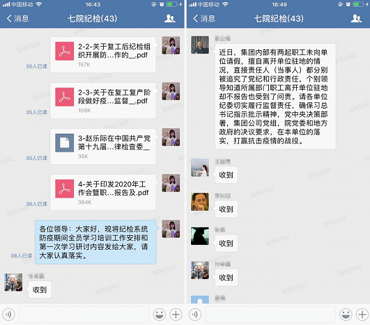 疫情防控期间,航天建设纪委充分利用航天云信等互联网办公软件组织全级次纪检人员开展集中学习和自学。按照中央纪委国家监委、航天科工纪检监察组及航天建设党委工作部署,迅速启动监督检查应急响应机制,成立了监督指导保障组,加强应急力量,切实做好监督检查等各项工作。