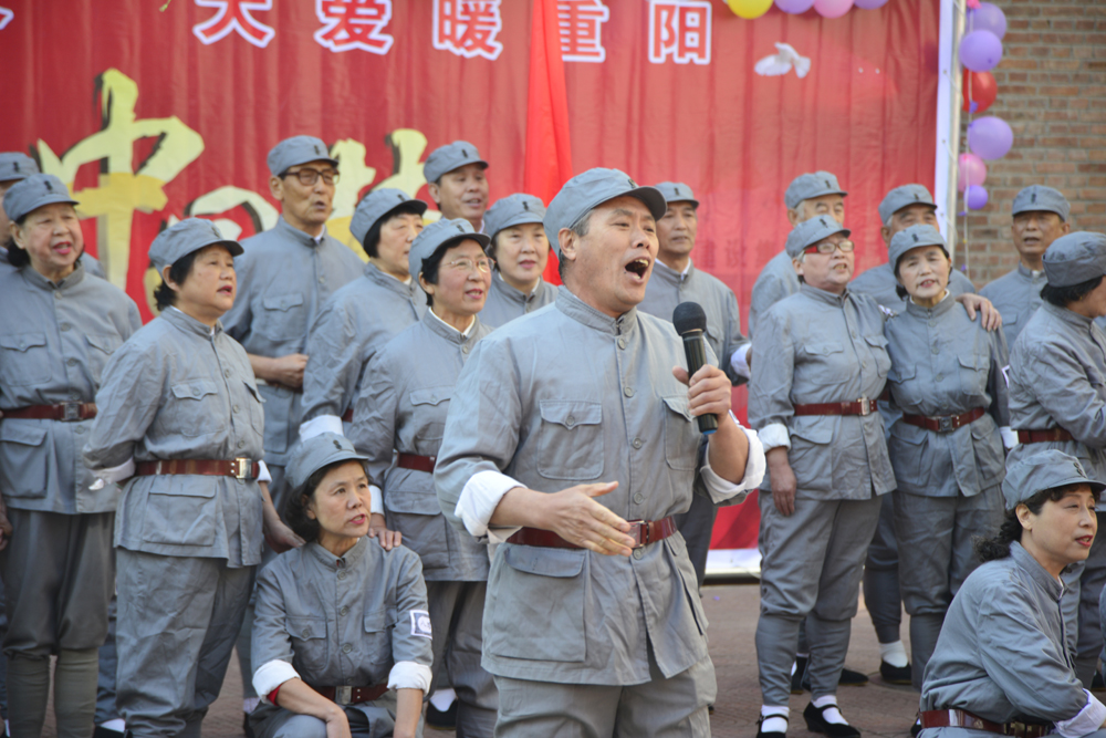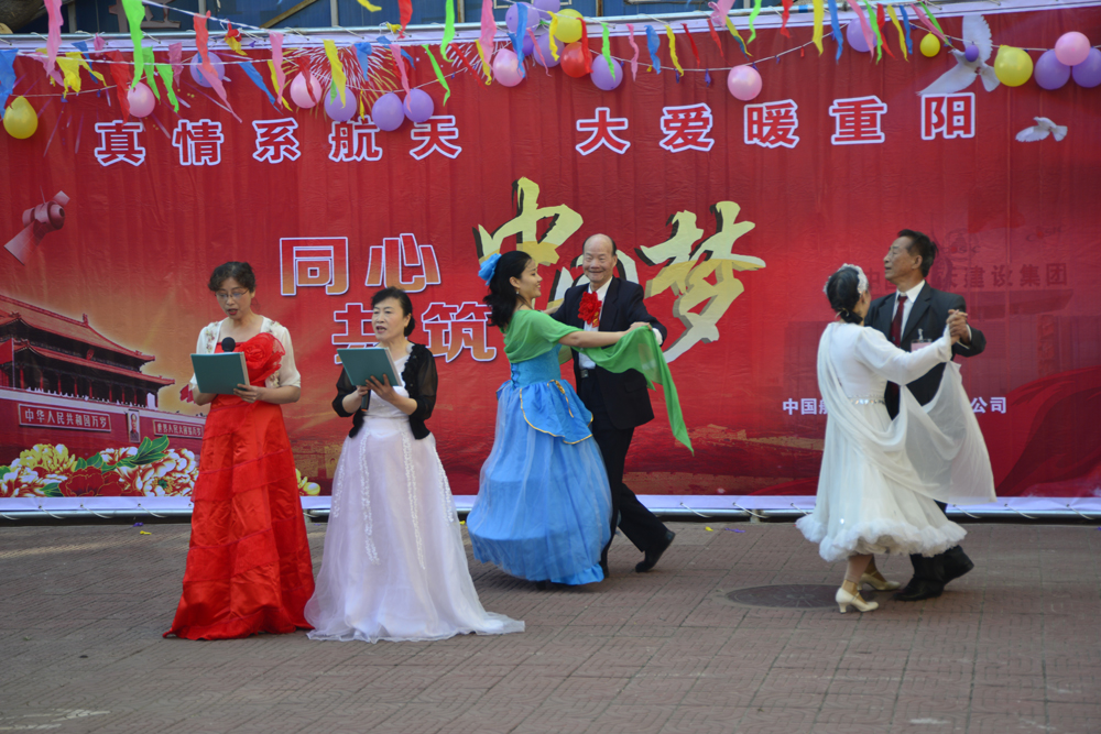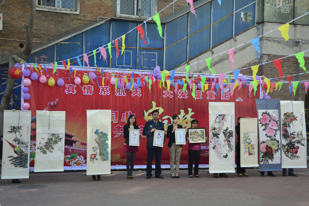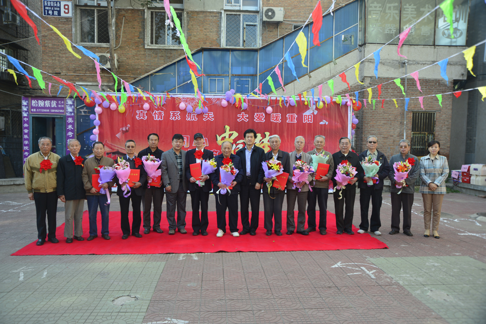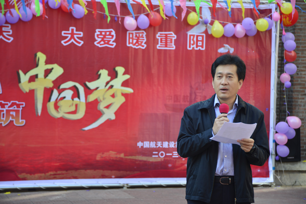 当日风和日丽,会场彩旗表扬,大红标语与条幅悬挂在会场四周,“真情系航天、大爱暖重阳、同筑中国梦”的大型彩色幕布矗立在主席台对面,整个会场洋溢着节日祥和的气氛。
