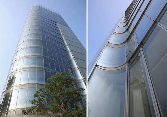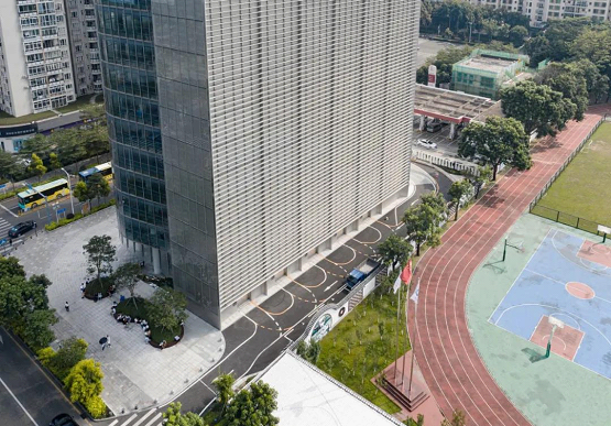 大厦首层设置的城市公共开放空间,有效延伸建筑内部,与城市景观有机融合。在地面上看,建筑为通透透明的,残疾人坡道入口与城市广场结合,融入到建筑中,并开放朝北的景观面。