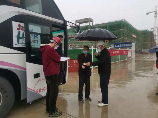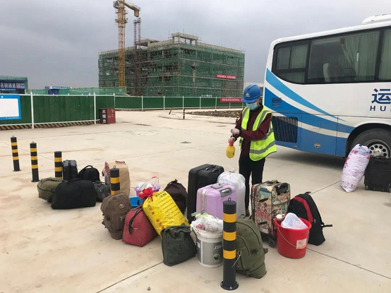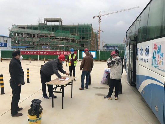 办公区、生活区、施工区实现封闭管理,强化门禁系统与实名制监管,人员出入口设置消毒、体温登记。对于返场工人,要求“点对点”包车,在工人出发地包车将工人集中送到项目。工人到达项目后,边下车边量体温,并对行李等物品用75%酒精进行消毒。