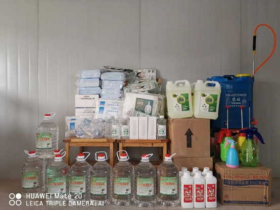 配备口罩、医用酒精、消毒液、一次性手套、护目镜等消毒防护用品,发放给管理人员及工人使用。