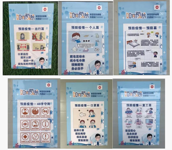 在办公区、生活区、食堂等人员出入口醒目位置张贴疫情防控“小常识”、预防疫情——48字守则、保洁消杀制度等防疫标识,工人进场进行疫情防护安全教育,并发放《航天科工空间工程发展有限公司卫星产业园(一期)建设项目新型冠状病毒防疫手册》。