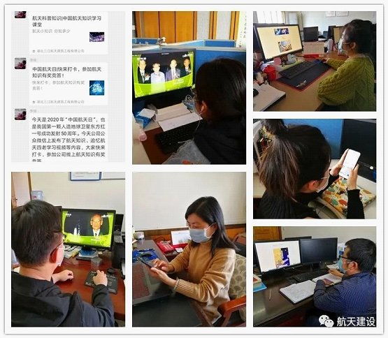 4月24日,科技城公司组织全体员工在各自的办公室线上观看2020年“中国航天日”启动仪式。为了让更多的人了解航天事业,科技城公司在庆祝“中国航天日”活动期间,公司在园区及综合办公楼张贴航天日宣传展板,向园区各单位推送航天日视频,向公众科普航天知识。科技城公司鼓励全体职工要传承和弘扬航天精神,迎难而上、奋勇拼搏,基于创新、成于实干,边建设、边运营、边出成果,让航天的种子在浙东沿海生根发芽、开花结果,为区域经济高质量发展赋能添力。