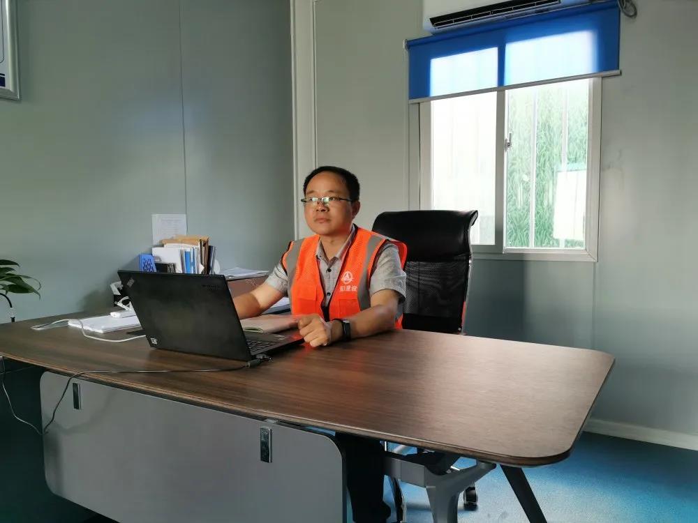 项目生产负责人石浩,这是一名在建筑工地摸爬滚打多年的90后小伙子,地地道道的陕西娃,操着一口地道的“秦腔”。在接到项目复工通知的第一时间,他没有犹豫和同事们驱车一千多公里,连夜赶到山东工地现场,投入项目复工复产工作中。白天在基坑边认真指挥挖掘作业,晚上在作业面检查、指导混凝土浇筑。只有在夜深的时候,才能得空在工地宿舍和妻子视频传递互相的关心关爱。