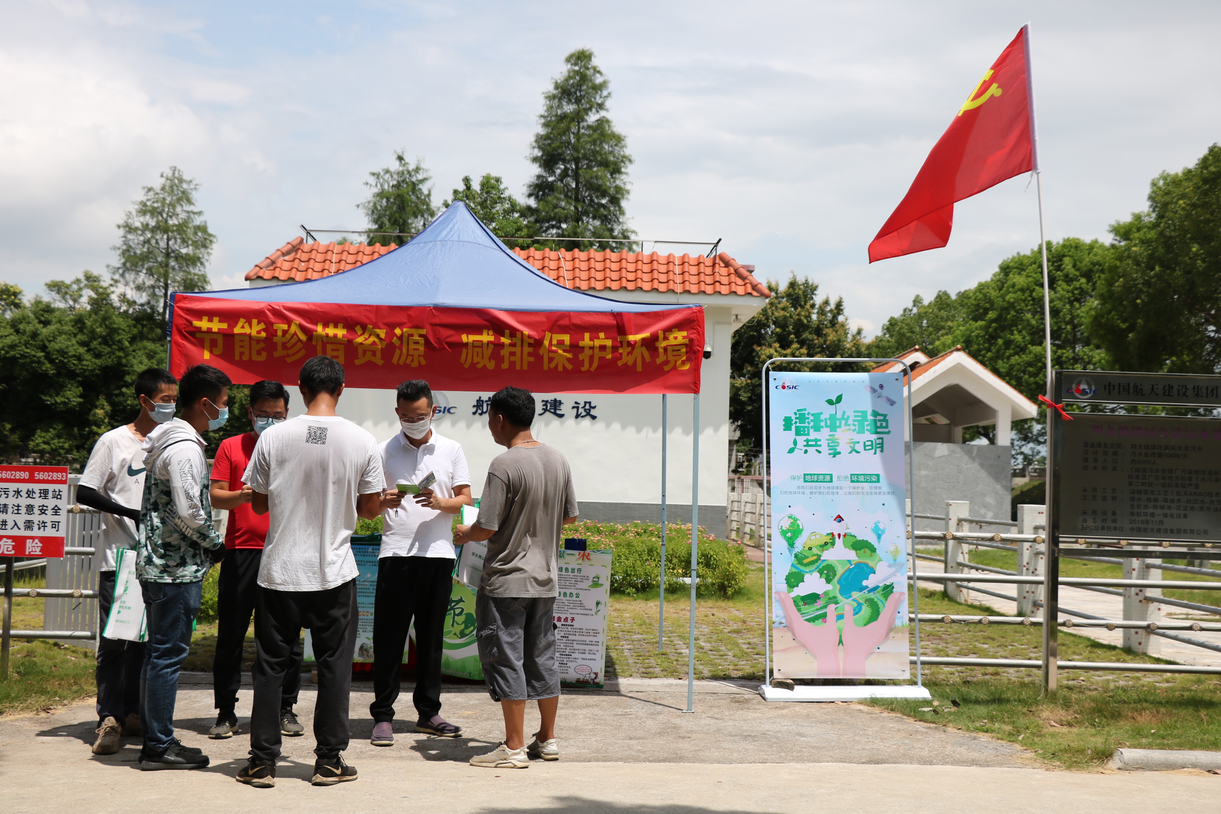 为深入贯彻落实习近平生态文明建设思想,扛起生态文明建设政治责任,夯实绿色发展基础,打赢污染防治攻坚战。航天建设所属华航环境江航公司迅速落实上级有关文件精神,7月1日,组织职工在台山市四九镇生活污水处理厂开展节能环保主题活动,将环保理念落到实处。