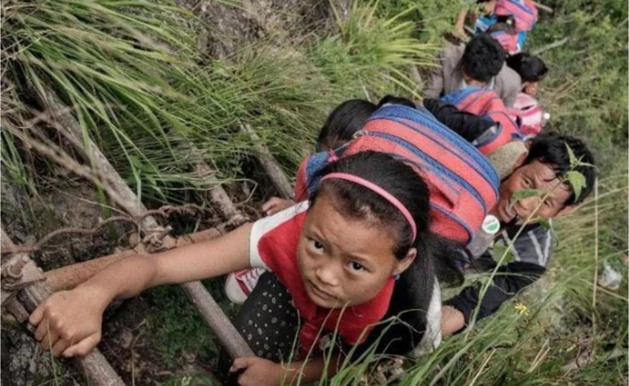 “悬崖村”位于大凉山腹地的昭觉县,是四川省最后七个要脱贫摘帽的贫困县之一。昭觉县的支尔莫乡阿土列尔村因进出村庄需攀爬陡峭的悬崖而被称为“悬崖村”,该村村民需依靠由2500余根钢管构成的“钢梯路”出行。