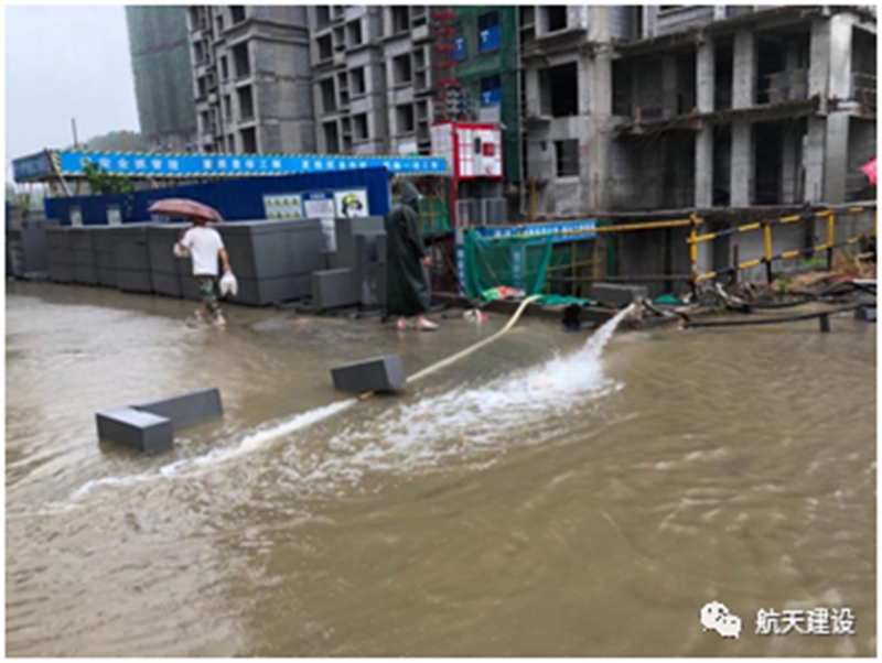 7月22日凌晨突降大暴雨,项目部防汛小组迅速行动,冲在最前面的是老党员张银生和新党员郭凯。他们迅速通过查看现场水势,制定排水措施组织人员对低洼地点进行沙袋封堵,减少基坑积水,通过连续4小时奋战终于使现场积水得到有效控制。看到险情排除,张银生和郭凯这才松了一口气,此时他们才感觉到饥肠辘辘、疲惫不堪。为了监控积水抽排情况,他们匆匆抓起几个馒头就奔向各自值守的岗位,大家轮流值班丝毫不敢放松,直到夜幕降临场区主道路、基坑等地积水已基本排除,此次防汛抢险工作圆满完成。正是有了党员先锋的模范带头,在最危险最困难的时候挺身而出,项目施工才得以顺利进行。党员先锋冲在前的背影给了项目部所有人力量和勇气,这更是载人航天精神“特别能吃苦,特别能战斗,特别能攻关,特别能奉献”的具体表现。