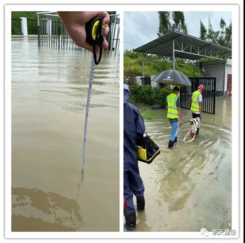 防汛抢险救灾,一刻也不能耽误,一刻也不能松懈。因前期防御工作落实到位,其余站点情况良好,只有冲蒌镇站点因河水倒灌而被淹,此时站点内积水达66厘米。