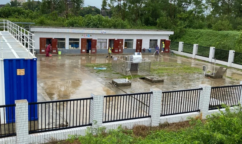 大家一起扛沙包堵进水口、接抽水泵排洪水、最后用清水冲洗淤泥,在战斗四个小时后,冲蒌镇站点又恢复了原来的样子,恢复正常运营。在经历2018年“天鸽”和2019年“山竹”后,广东台山市村镇污水处理项目再次经受住大自然的考验。