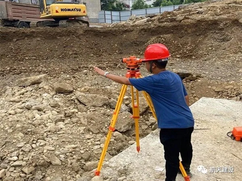 ●8月7日,襄阳谷城裕丰世纪广场项目,技术员黄晨阳,37℃高温下,通过水准仪指挥挖掘机对场地进行抄平,为下步项目地板施工做准备。