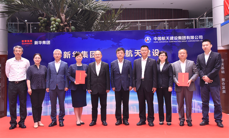 8月27日,新华集团蔡冠深主席一行到航天建设参观访问,并签署项目合作协议。航天建设党委书记、董事长高峰,党委副书记、总经理李治国及发展计划部和产业融合研究院等相关负责人参会,并出席签约仪式。