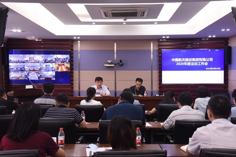 为贯彻落实法治央企建设工作要求,大力弘扬法治精神、推动法治实践,航天建设于8月26日组织召开了2020年度法治工作会议。党委书记、董事长高峰,副总经理、总法律顾问刘韧,各部门负责人及所属单位相关负责人员参会,会议由刘韧主持。