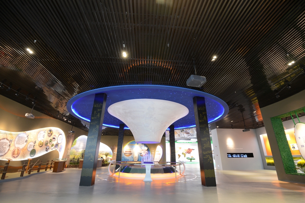 记者在展示基地看到,园区内最为醒目的是居于北部湖畔的种业展示中心。该馆外观呈阶梯状分布,从正面望去,三个层次与正门处的凹形设计叠成一个“丰”字。华阳公司设计师表示,该种设计寓意“在丰台区举办的世界种子大会将是丰收的舞台”。
