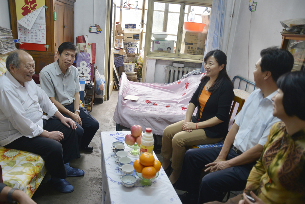 9月28日,中国航天科工集团公司直属党委副书记王建生、人力资源部部长任玉琨、直属工会副主席孙雪涛一行来到七院退休职工、“北京榜样”林家丰家中,在国庆节、重阳节前夕送去节日的慰问。七院党委副书记、纪委书记、工会主席李秀芬及党群部领导一同参加慰问。