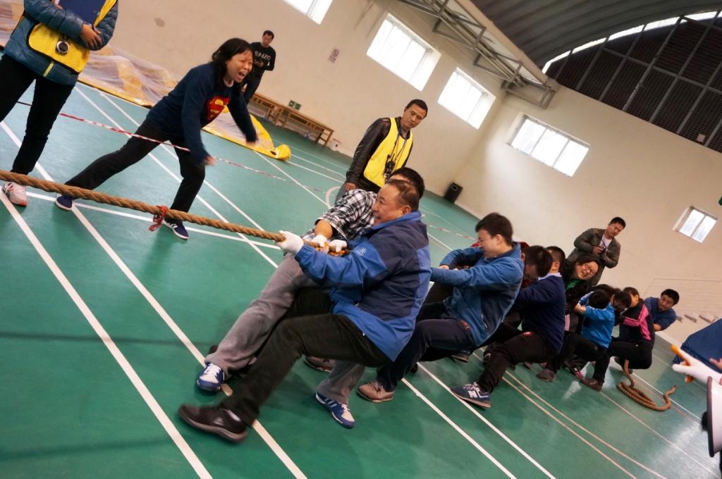 本届趣味运动会共设九个比赛项目。其中,“托球接力跑”是一个讲究平衡技巧和速度的游戏,6名参赛队员以羽毛球拍托着网球奔跑接力,不仅要快,而且要稳,这就需要队员们彼此间的配合和整体的协调;“平板支撑”项目每队四名参赛者同时开赛,在队员不住的呐喊和欢呼下,最终冠军超常发挥,以5分钟的超长发挥夺冠,爆发了全场热烈的掌声;而在“多人跳绳”这个特别讲究全体员工互相配合的游戏中,10名队员全部上阵一齐跳绳,比的不仅是速度、心态,更是全员整齐而默契的配合程度,这对参赛队员的综合能力提出了更高的要求……特别是最后的拔河比赛,将上午的比赛热情推向高潮,比赛中加油声、欢呼声、呐喊声尽情沸腾在运动场的各个角落,到处张扬着青第三设计研究院每一位员工的全部激情和无尽的骄傲!在每个项目结束后,各队的比分都公示在得分榜上,各队的名次你追我赶,比赛不到最后,依然是激烈的争逐。